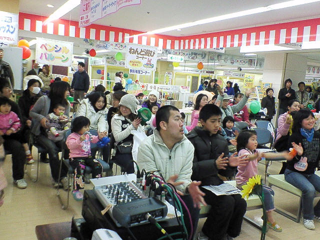 奈良、桜井市の「ふれあいプレイスin桜井」で、「ヤマトー桜井ショッピングセンター」でイベント。このお祭りはもう、楽しくて楽しくて。参加者全員がニコニコなんです。特に子供たちが最高潮に暴れる暴れる。収拾が付きません。ある種のミニ暴動状態です。