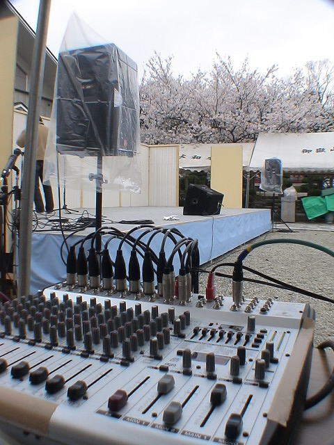 某所の桜祭り。すごいキレイな桜でしたが、途中から雨になってしまったので大変。