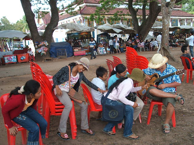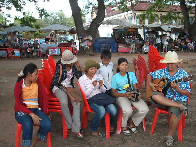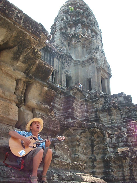 カンボジアのアンコールワットにいきました。おみやげものやさんの人々が歌ってたので、カンボジアンポップスを伴奏しました。カンボジアのみんなも歌が大好きです。アンコールワットにはまた生きたいなー。トラが寝ていたので一緒にお昼寝しました。