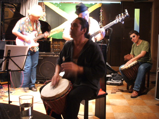 奈良、「ミセスK」にて。この日はボビー率いるダンデライオンズのレゲエライブ。もりあがりましたよー。