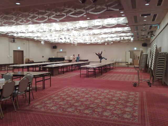 演奏会場は写真のひろい結婚式のバンケットルームのような大広間でした。こんなところでできるのかと思うとワクワクしました。